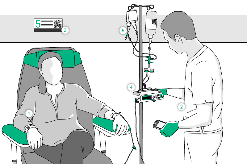 After the 5-point scan process is complete, the oncology nurse selects the right venous access and starts the infusion via the PDA. After starting the infusion, the pump sends the therapy information back to the OncoSafety Remote Control® system. This closes the loop of the medication therapy including seamless documentation of the entire system.